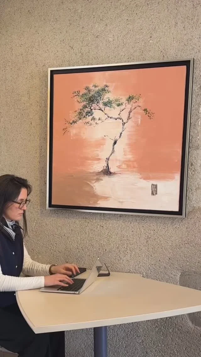 Que ce soit à travers "Rêve éveillé", où l'arbre semble flotter parmi les nuages, ou le vibrant "Palmier Magique" aux teintes arc-en-ciel, chaque toile est une fenêtre ouverte sur un monde de sérénité.